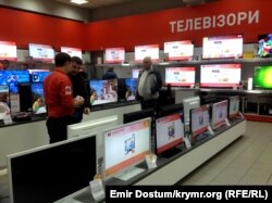 Ще одна сфера застосування рубля, який швидко дешевшає, – покупка споживчих товарів. Містами Росії прокотився бум продажів в магазинах побутової техніки та електроніки, який не обійшов стороною і Крим. «Зазвичай напередодні Нового року завжди великий наплив, але в цей раз людей більше через падіння курсу рубля. Хтось хоче купити те, що раніше вже планував», – розповів співробітник магазину «Фокстрот» у Сімферополі. За словами продавців, найчастіше клієнти купують телевізори, кухонні комбайни, холодильники, електрочайники та іншу побутову техніку. Доходить до того, що в залі просто не вистачає обслуговуючого персоналу, щоб задовольнити інтереси всіх клієнтів.