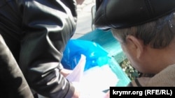 «Ці свідоцтва взагалі не потрібно переробляти, – намагаються пояснити «самооборонівці» натовпу. – Ось читайте», – і підводять людей до дошки оголошень, де написано: «Всі документи, видані до 18.03.2014 року, дійсні й не підлягають обміну».