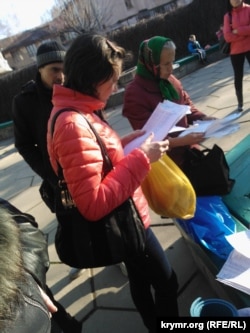 «Я сьогодні прийшла відзначатися, а листок з трьохсотими номерами зник, – каже мешканка Сімферополя. – Я 10 днів ходила сюди щодня, вже близько була. Мені що тепер – заново записуватися?»
