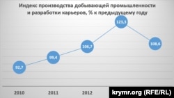 «Міністерство» промислової політики Криму у своєму «Макроекономічному огляді» за 2014 рік вихваляється зростанням добувної промисловості та розробки кар'єрів на 8,6%. Це, дійсно, єдина сфера, в якій спостерігається приріст показників, але проблема в тому, що цей приріст у 2014 році... сповільнився.