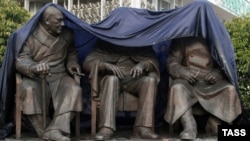 І все ж навіть ці люди, які витягають Сталіна на п'єдестал, починають цуратися свого кумира як поганої хвороби. У них немає мужності просто поставити пам'ятник своєму ідолу, вони взагалі роблять вигляд, що це не Сталін зовсім, а Сталінрузвельтчерчилль, це не вождю пам'ятник, а ялтинському світопорядку – і де ж йому бути, як не в місці, з якого почалося руйнування цього світопорядку?