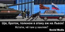 7 травня перші позиції в обговореннях посів танк нового покоління «Армата», який заглух у Москві на Красній площі під час генеральної репетиції параду на честь Дня перемоги. Фотожаби про зламаний танк навіть витіснили зі сторінок соцмереж жарти про пригоди Зоряна Шкіряка в Непалі.