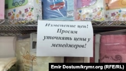Інша характерна картина в ці дні в сімферопольських магазинах – зміна цін упродовж дня. Нерідко на цінниках вказана одна сума, а на касі – виявляється зовсім інша. Так, в одному з сімферопольських магазинів посуду прямо на прилавку можна зустріти напис на аркуші: «Зміна ціни! Просимо дізнаватися ціни у менеджерів!».