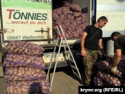 Серед безлічі фур знаходимо вантажівку з сумськими номерами, в якій лежить картопля. Водій зізнається, що встиг заїхати до Криму ще до блокади. Оптова ціна картоплі трохи вища за середню – 25 рублів за кілограм, проте покупці беруть її охоче.