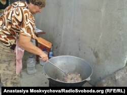 На польовій кухні волонтери готують плов. Планують пригостити також людей на блокпостах біля двох інших контрольно-пропускних пунктів – Каланчака і Чаплинки.