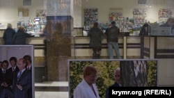 Народ на поштамті щось надсилає й отримує. А у вітрині проглядає «фотовиставка кореспондентів «МК», що супроводжували президента Росії Володимира Путіна країною і світом. Рідкісні кадри експонуються у вітрині Центрального відділення ФДУП «Пошта Криму» (Московский комсомолец. Крым). Мда, рідкісний Путін.