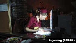 А це окремий сюжет. Те, що в ресторанах Сімферополя мимоволі вечеряють при свічках, екзотичним не виглядає, романтика, як-не-як, хоч і вимушена. А ось містично освітлений фаст-фуд – це вже якийсь сюрреалізм. Причому все інше виглядає, як і годиться в урбаністичному закладі. Їдальня «У мами».
