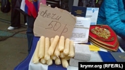 Отже, вчора під вечір сходив на Центральний ринок. Купив у літньої кримської татарки несподівано дешеві помідори (по 70 рублів за кілограм, це десь 25 гривень), яблука (золотистий Нижньогірський Гольден, за такою ж, як у помідорів, ціною) і зелень (15 рублів за пучок, трохи більше 5 гривень), навідався до сирного лабазу (українські сири ще є, ціна в середньому – 450-500 рублів, тобто 140-180 гривень за кілограм, поки не подорожчали) і пішов додому.