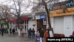 Народ, як і раніше, поспішає зняти готівку, поки є електрика – головний офіс РНКБ, віджатий у «Приватбанку».