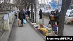Продукти не подорожчали. Але ось цей кадр демонструє сутність міської влади (та й усіх інших у Криму). Це так звані «незаконні» торговці, яких учергове прогнали з ринку.