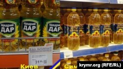 Насамперед, дивимося на соняшникову олію. У Криму українське благополучно імпортозамінене, навіть іноді трапляється «Олейна», яка має штрихкод, що починається на 46. Тобто розкручена марка російськими виробниками використовується щосили – сподіваюся, що законно.