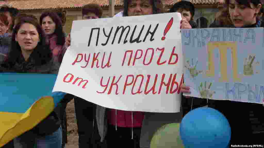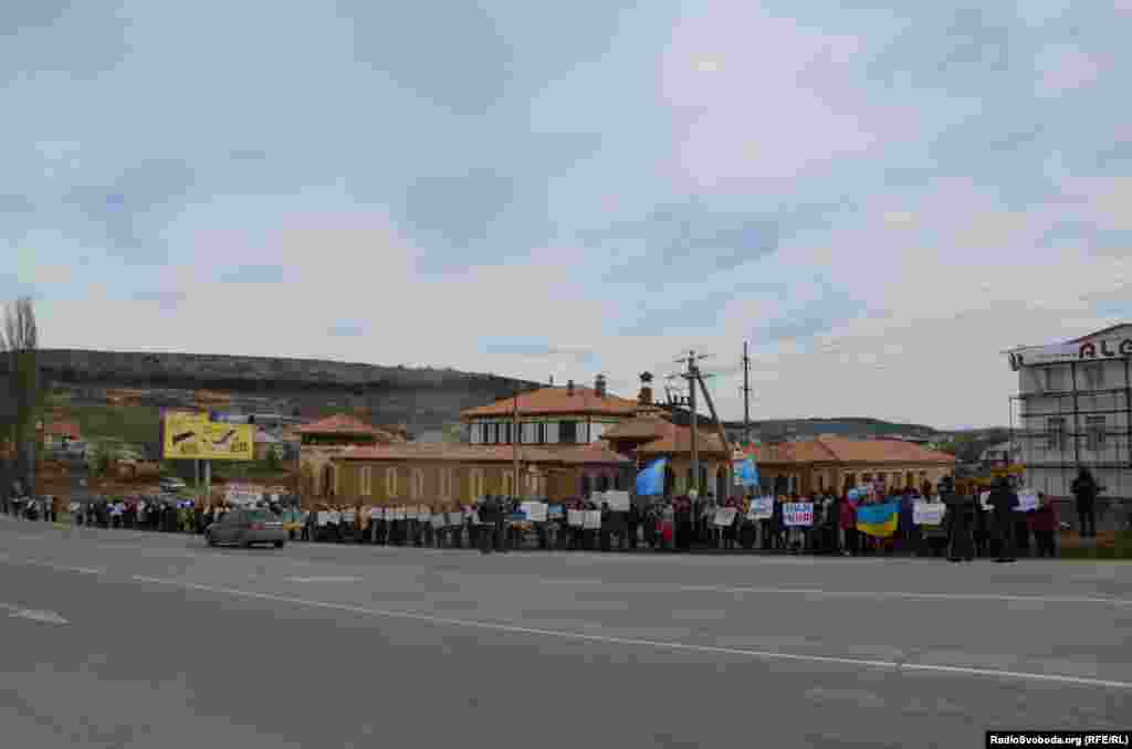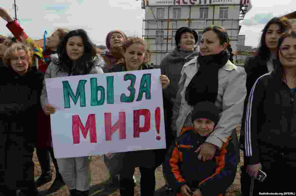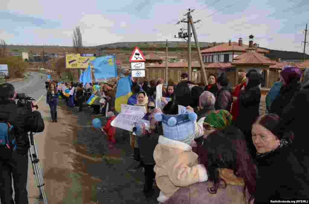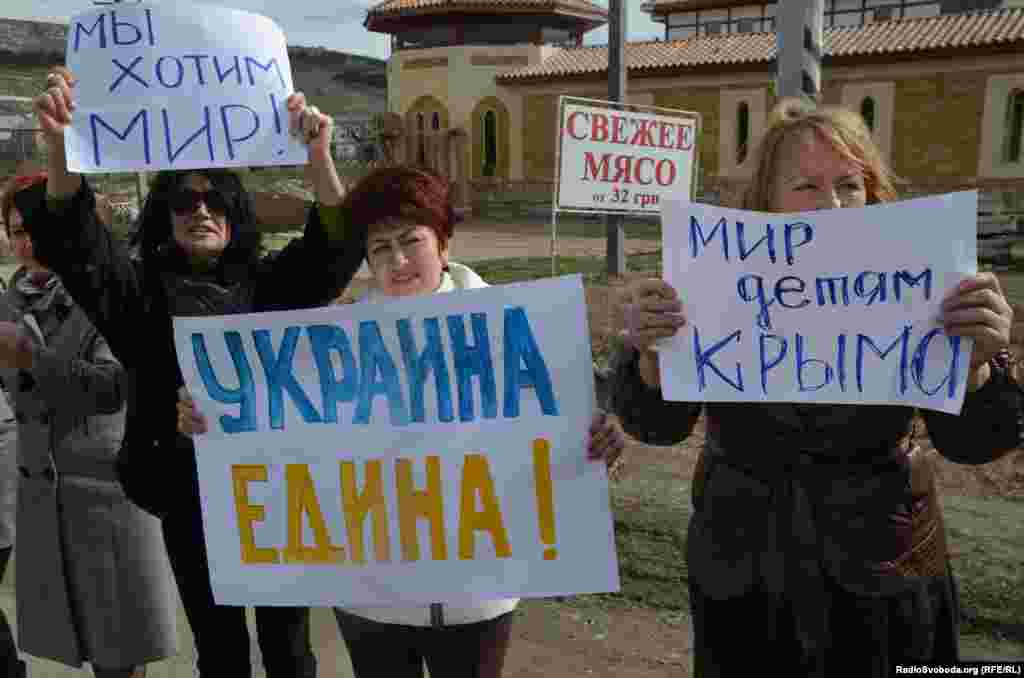 До другої річниці російської анексії українського півострова Крим.Реалії публікують архівні фото, на яких видно, як у 2014 році відбувалась окупація Криму та як його мешканці чинили їй спротив. Кількасот жінок із кримськотатарського масиву Строганівка на околиці Сімферополя провели акцію за мир і проти перебування російських військ у Криму. Вони вишикувалися вздовж Об'їзної дороги з українськими та російськими прапорами, жовтими і блакитними повітряними кульками. Багато автомобілів, які проїжджали трасою, сигналили на підтримку акції.