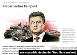 Матеріал під заголовком «Польова пошта Порошенка» також оздоблений нагадуваннями, що у вирішальний момент війни глава української держави займався тим, що засновував офшорну фірму. «Поки Порошенко веде війну, його ім’я спливло у «Панамських документах», – написали журналісти Süddeutsche Zeitung.
