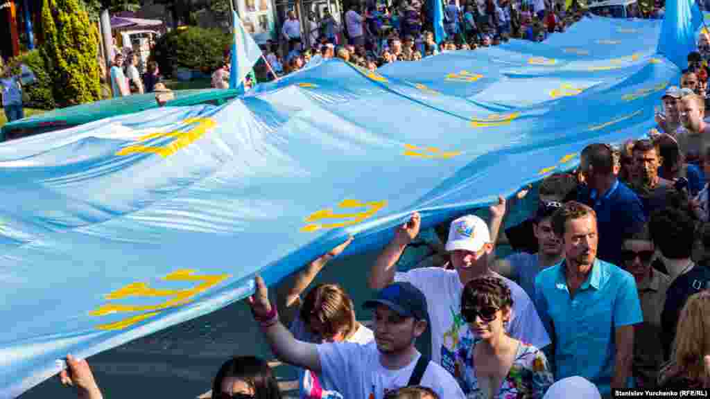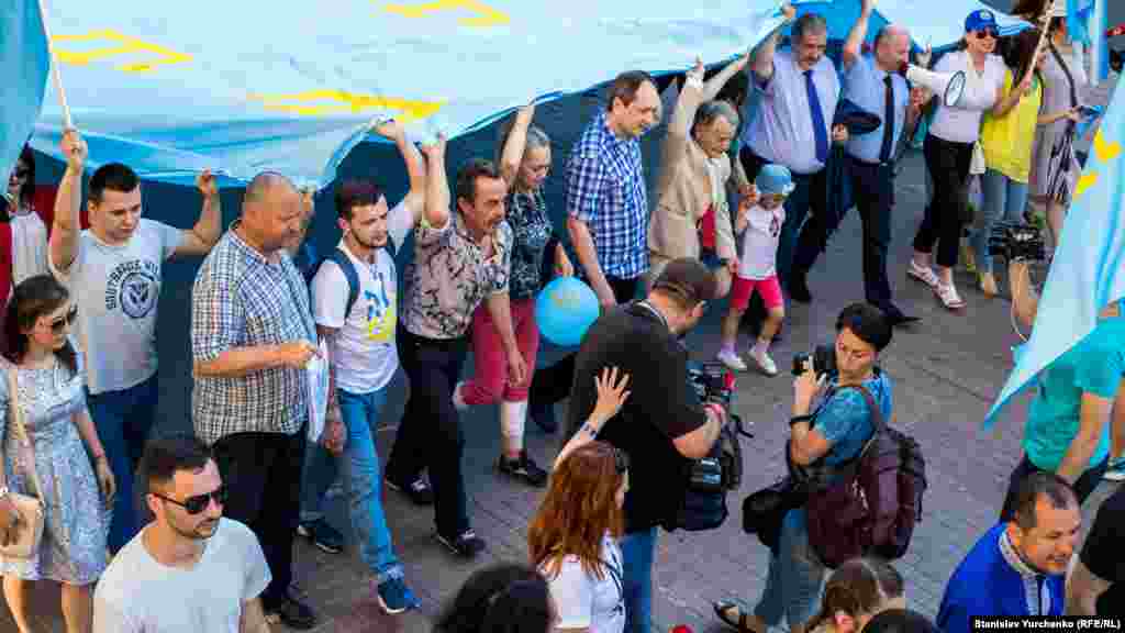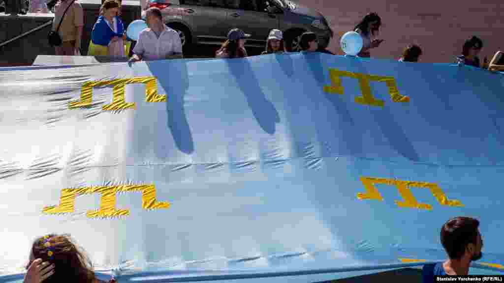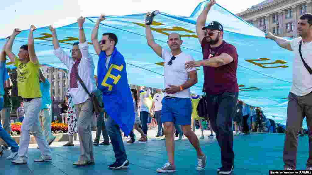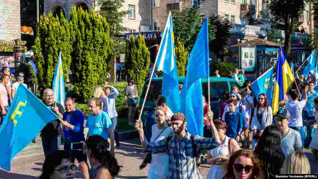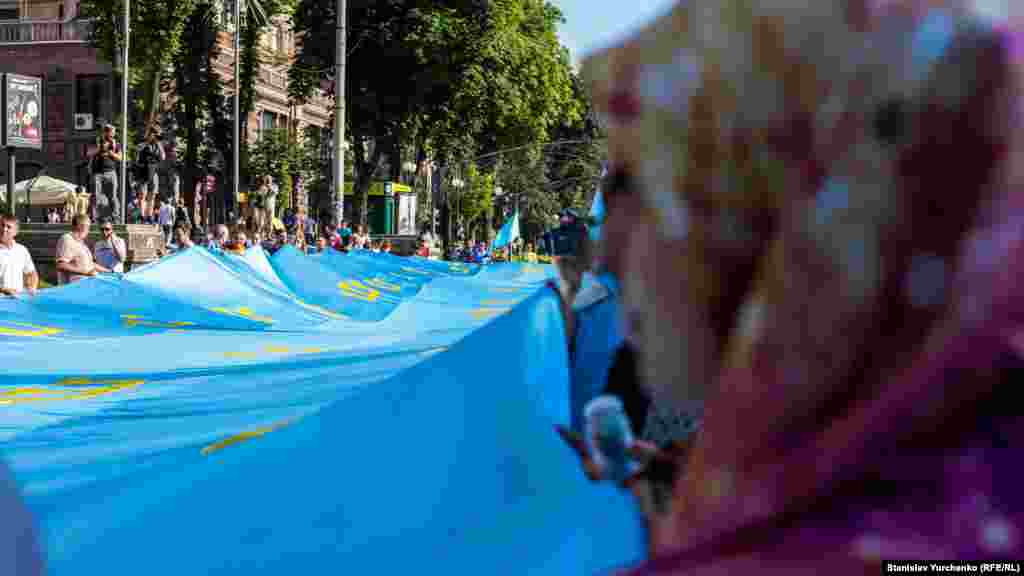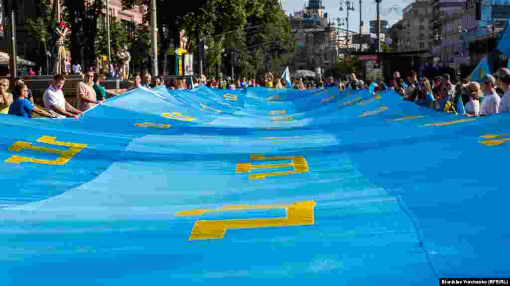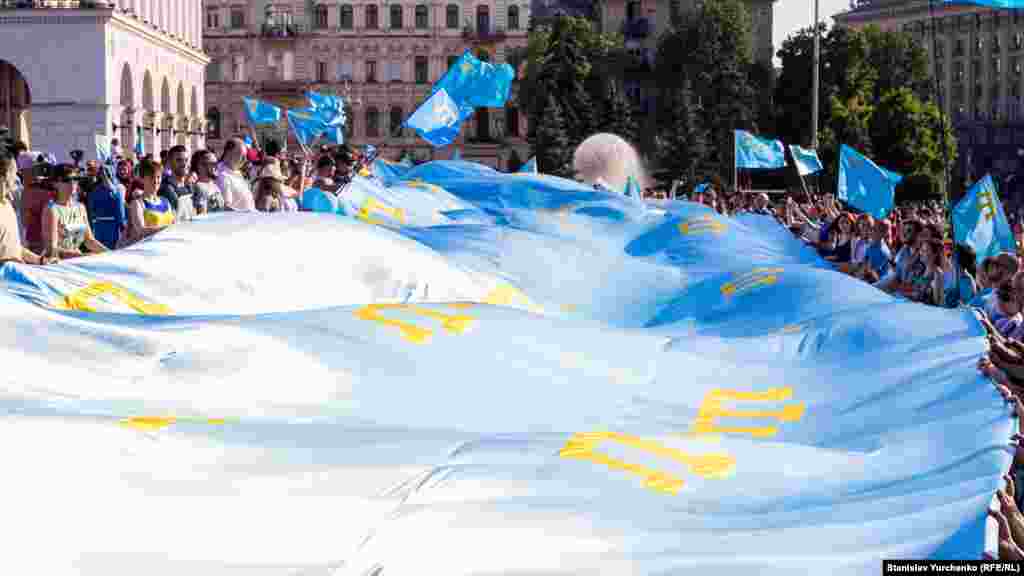 У Києві на честь Дня кримськотатарського прапора відбулася хода із майже 40-метровим стягом. На заході були присутні кримські активісти, переселенці, представники Меджлісу кримськотатарського народу. День кримськотатарського прапора почали відзначати кілька років тому в Криму. Датою святкування був обраний перший день другого Курултаю кримськотатарського народу, який відбувся 26-27 червня в Сімферополі в 1991 році.