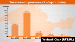 2016 рік демонструє ще більш сумну динаміку: за перший квартал зовнішньоторговельний оборот Криму склав тільки 17,4 мільйона доларів США.