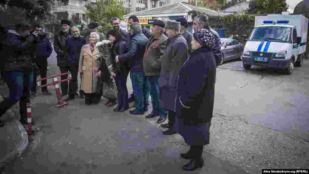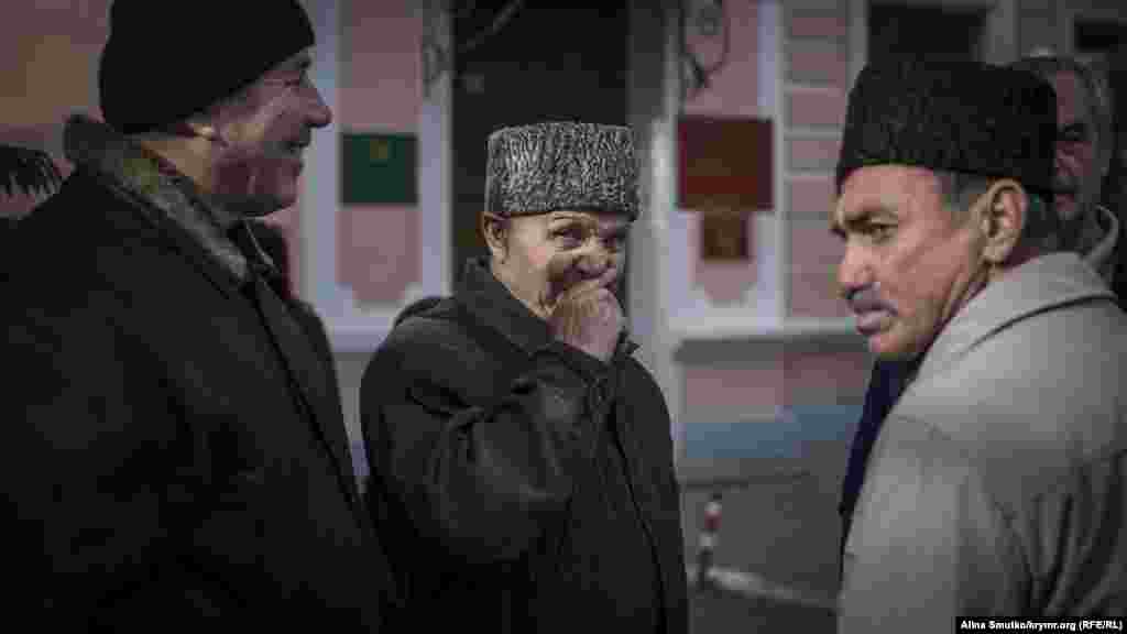 У Центральному районному суді Сімферополя 17 жовтня відбулося чергове судове засідання у справі «26-го лютого». Біля дверей суду Аліє, мати одного з фігурантів справи Мустафи Дегерменджі, провела свій 51-й День народження. Друзі та родичі підсудних прийшли привітати і підтримати Аліє.