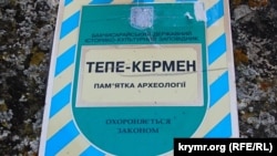 До речі, тепер Тепе-Кермен, по суті, опікуються подвійно. За самими печерними об'єктами вздовж всього кола плато однойменної гори-останця в межах 1,4 гектара пильнує музей-заповідник. Про це свідчить колишня охоронна табличка з вишкрябаною дощенту, як видно найбільш завзятими «кримнашівцями», українською держсимволікою.
