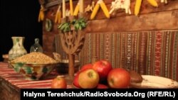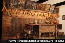 «На центральній стіні, що була навпроти дверей, висіли хатні ікони, на склі й на дереві. Такі ікони були у кожній хаті. Традиційно були сирні коники, кукурудза, вішали також і писанки. Ми хотіли показати поєднання християнських традицій і отих поганських, які тісно переплітаються на Гуцульщині. Донині існує традиція закликання господарем на Святий вечір душ померлих», – розповідає мистецтвознавець Любава Собуцька.