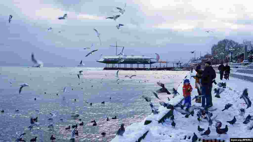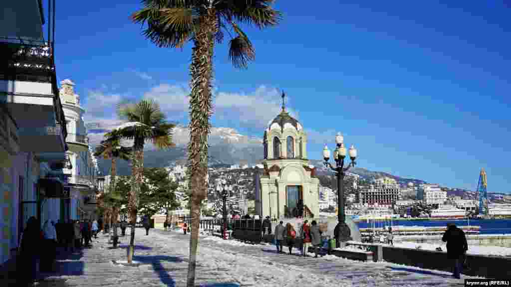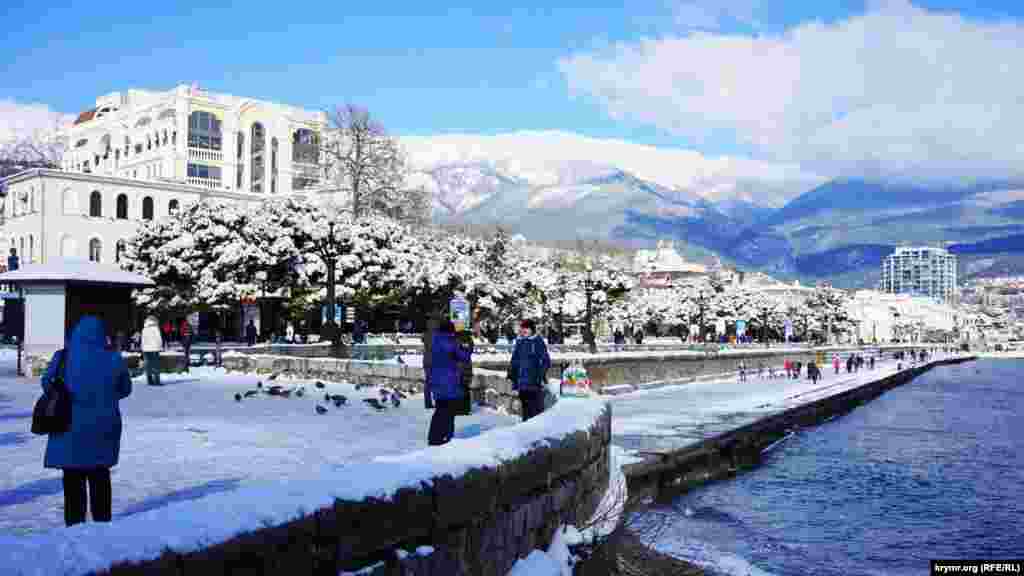 У п'ятницю 27 січня в Ялті випала третина місячної норми опадів: усе місто покрило товстим шаром снігу. Сильний снігопад призвів до заторів і ДТП на автошляхах. Наслідки снігопаду ліквідовують досі, тому російська влада Ялти просять громадян утриматися від поїздок машинами без гострої необхідності. Як виглядає засніжена Ялта – у фотогалереї Крим.Реалії.