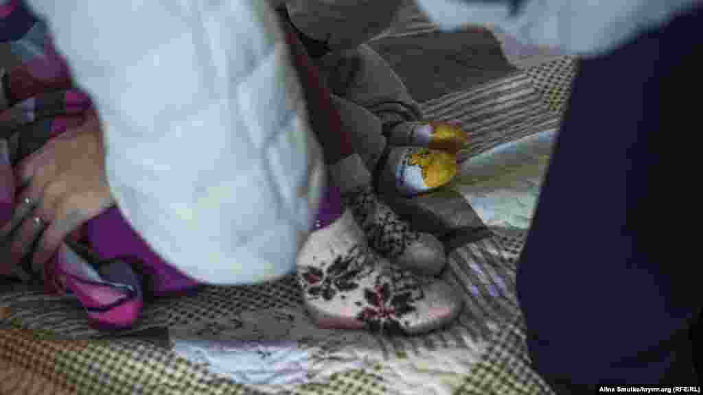 Аміра грається з жирафом, якого їй подарували члени організації «Наші діти» («Бізім балалар»), які взяли під тимчасову фінансову опіку дітей кримських політв'язнів і зниклих безвісти кримчан