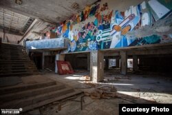 «Ця унікальна ліпнина перетворюється на пісок. Є ще масштабна художня картина в палаці «Енергетиків» на другому поверсі – це теж зображення атомників, людей, дівчат, що в колі взялися за руки, в цій картині бачимо такий творчий пошук, зараз від неї майже нічого не залишилося. От, ти людям показуєш фотографії, як було 11 років тому і як зараз, – бачимо жахливі зміни», – знизує плечима Антон Юхименко.