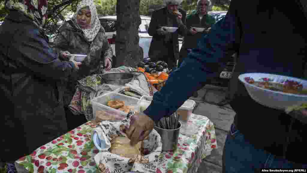 Біля будівлі суду Енвер Муслядінов з дружиною організували обід для тих, хто прийшов підтримати Чийгоза