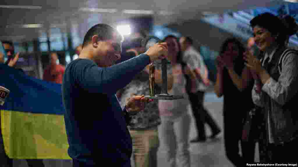 31 травня в Київському міжнародному аеропорту «Бориспіль» його зустрічали правозахисники, активісти і прості кримчани.