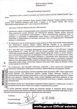 Втім, до 1 липня 2017 року колишні власники «Приватбанку» – бізнесмени Ігор Коломойський та Геннадій Боголюбов мали погодити реструктуризацію боргів перед банком пов’язаних з ними компаній. Про готовність до такої співпраці свідчить лист тодішніх власників банку до уряду з проханням націоналізувати «Приватбанк» та з запевненнями у готовності до співпраці, стверджує міністр фінансів Олександр Данилюк. На початку липня він заявив, що, попри це, реструктуризація цих боргів не розпочалася.