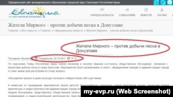 У жовтні скарги жителів Мирного дійшли на «гарячу лінію» Сергія Аксенова (Аксьонова). Після цього чиновники Євпаторії вирішили додатково вивчити доцільність видобутку піску в озері Донузлав, поблизу селищ Мирне та Новоозерне ТОВ «Яхтбудсервіс». Вони винесли це питання на громадські слухання.