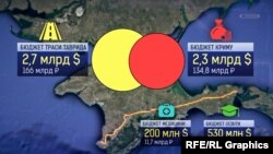 «Сама дорога «Таврида» від Керчі до міста Севастополя в чотири смуги коштуватиме десь 85 млрд рублів (1,45 млрд доларів ‒ КР)», ‒ говорив підконтрольний Росії голова Криму Сергій Аксенов (Аксьонов) телеканалу «Россия 24» у березні 2016 року.