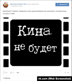 «Кінотеатр «Спартак» припинив своє існування як кінотеатр. Спасибі всім хто був із нами», ‒ йдеться в прощальному повідомленні на сторінці закладу «Вконтакте».