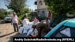 У розпалі спекотного дня ми заїхали у Водяне, що на Приазов’ї. Навколо понівечені будинки, майже ніде живого місця немає. Біля будинків рясніє врожай вишень, черешень та абрикосів. Посеред білих наповнених мішків сидить баба Зоя. Навколо неї працьовито ходять ще три чоловіки. Нині їм привезли гуманітарну допомогу – кукурудзу на висів. Зоя майстерно ділить на всіх отримане добро. Микола своє уже вантажить у стареньку зелену «Волгу» із причепом.