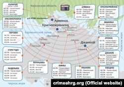 «Українським частотним ресурсом у Криму користуються 20 ліцензіатів Роскомнадзору. Це не 20 телекомпаній, це 20 медіахолдингів і окремих компаній, що володіють кількома радіостанціями та телеканалами. У Севастополі таких ліцензіатів 14. Телевізійне мовлення в Криму здійснюють 22 російські телерадіокомпанії, в Севастополі ‒ 23», ‒ стверджують у відомстві.
