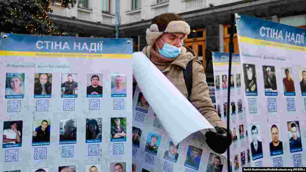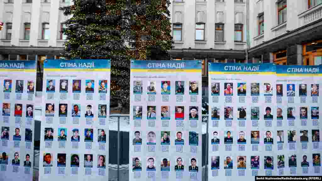 Рідні зниклих безвісти та полонених українців встановили під Офісом президента «Стіну надії» – стенди з фотографіями та іменами зниклих чи полонених українців
