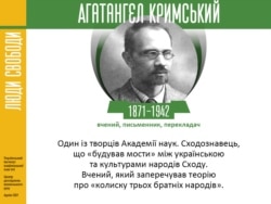 Він народився на Волині у російськомовній родині, але став українофілом. Він жартував, що легше знайти мову, якої він не знає, аніж порахувати скількома мовами він володіє. Його бібліотека нараховувала майже 50 тисяч томів і він перевіз її до Києва, коли вирішив покинути Москву, щоб взяти участь у cтворенні Української академії наук. Агатангел Кримський – геній і феноменальна особистість, став жертвою сталінських репресій за свої дослідження історії української мови. Де його останки, досі невідомо.
