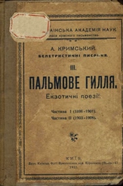 Збірка поезій «Пальмове гілля. Екзотичні поезії» вмістила вірші Кримського та його переклади арабських поезій українською мовою.