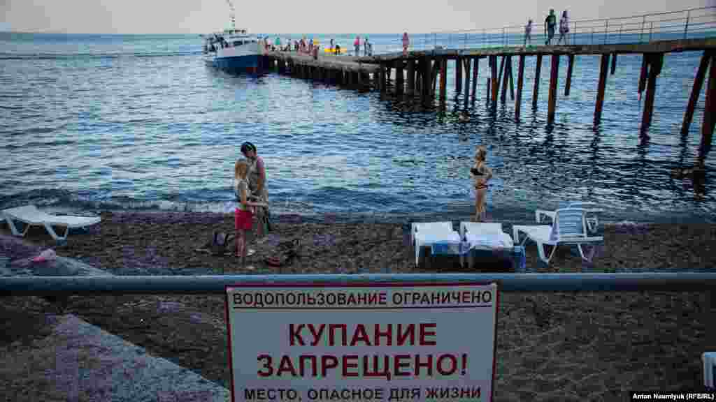 Увечері набережна перетворюється на особливе місце – фарби літнього заходу приваблюють сюди закохані пари й любителів поплавати в спокійній обстановці. Незважаючи на обмежувальні знаки, які забороняють купання, екстремали все ж знаходяться.