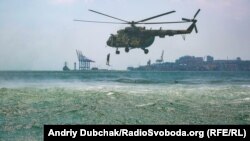 А так це виглядає зсередини гелікоптера (відео одного з плавців ДПСУ):