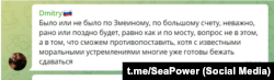 У тематичних телеграм-каналах росіяни активно обговорюють цю інформацію. Підписники телеграм-каналу «Морская мощь государства» коментують, у тому числі, й ось так: