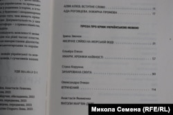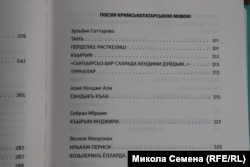Не можна не згадати і свіжіший факт, відображений у книзі ніби за замовчуванням. Тексти й переклади кримськотатарською мовою в книзі публікуються частково кирилицею, частково латиницею. Тією латиницею, яка була властива кримськотатарській мові після відходу від арабської графіки в 1928 році й до насильницького переведення її на кирилицю в 1939 році, і яка найбільш органічно відображає його фонетичні особливості. Рішення про це було ухвалене в 1991 році другим курултаєм кримськотатарського народу і було підтверджене й розвинене в рішеннях органів народного самоврядування в 1991-93 роках. Зараз Кабінет міністрів України ухвалив рішення про переведення алфавіту кримськотатарської мови на латинську графіку. Як зазначив міністр реінтеграції окупованих територій України Олексій Резніков, «кримськотатарська мова розвиватиметься в більшій гармонії з іншими тюркськими мовами, які після 1991 року перейшли або зараз переходять на латинський алфавіт».