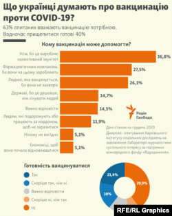 Тим часом усі вакцини проти COVID-19, наявні на світовому ринку, не пройшли усіх стадій випробувань, адже на четверту потрібні роки, препарати реєструються і допускаються до використання в екстреному режимі, зазначає у коментарі Радіо Свобода президент Всеукраїнської ради захисту прав і безпеки пацієнтів Віктор Сердюк. Відтак, на його думку, державі варто було би потурбуватися про підвищення довіри населення до вакцинації, заради чого запровадити державне страхування на випадок небажаних наслідків використання вакцини.