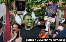 «Якось адекватно боротися з цим всім не вдається, вони ходять, їх охороняють. Ми вирішили зробити свою таку акцію, вийти і додати до цього більше веселощів», – зазначає Максим Діжечко. А на запитання, навіщо боротися, він відповів: «Вважаю, що це акція ФСБ». Чоловік стоїть у вигляді чи-то орка, чи-то ельфа, із пофарбованим в зелений колір обличчям, представляється як міністр магії.
