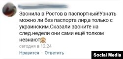 «Телефонувала до Ростова (Ростова-на-Дону в Росії – ред.) у паспортний. Запитати, чи можна отримати паспорт без документа «з ЛНР», а лише з українським паспортом. Сказали, щоб телефонувала наступного тижня, бо вони самі ще цього не знають», – написали в соцмережі.