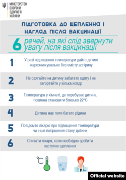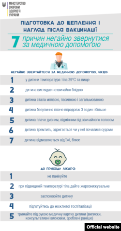 Незабаром після введення вакцини можуть з'явитися підвищення температури, біль у руці чи припухлість в місці ін’єкції, але така реакція проходить протягом кількох днів.