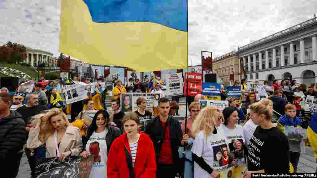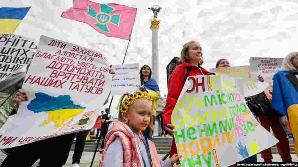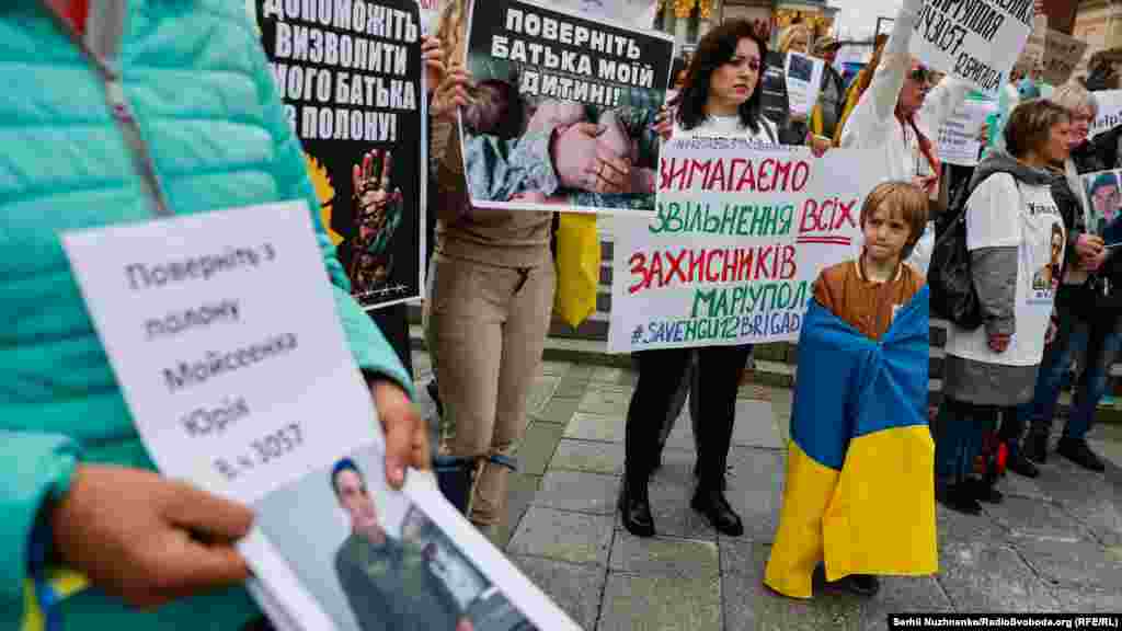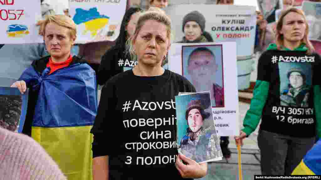 Кілька сотень рідних військовополонених і зниклих безвісти захисників України з різних підрозділів ЗСУ провели 1 жовтня акцію на майдані Незалежності в Києві. В акції взяли участь, зокрема, родичі полонених «азовців» та військовослужбовців кількох військових частин, які боронили Маріуполь.
