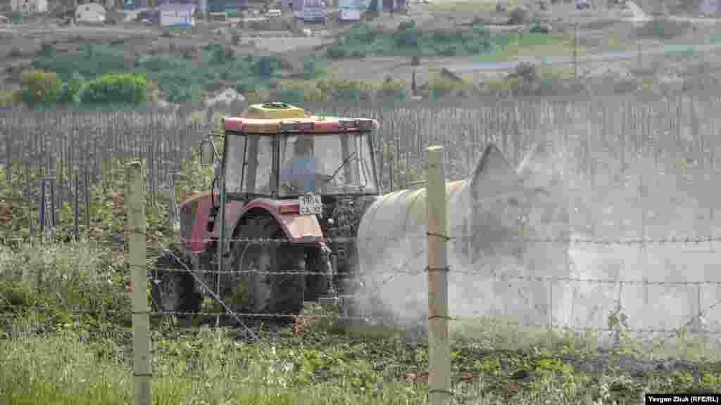 Трактор, що розпиляє хімікати на виноградниках «Золотої Балки» | Кримське фото дня