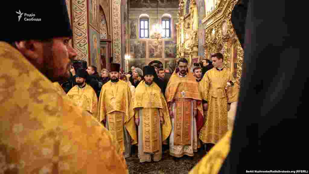 16 грудня вранці новообраний предстоятель Православної церкви України митрополит Епіфаній провів першу літургію в Михайлівському Золотоверхому соборі.