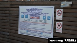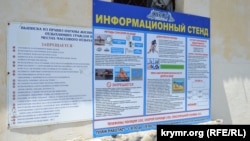 Однак на іншому інформаційному стенді, розташованому неподалік, зазначений інший графік роботи ‒ з 9:00 до 19:00. На цих же інформаційних стендах вказані телефони рятувальників, «швидкої допомоги» та поліції, яких немає у рекомендаціях Мінкурортів і туризму Криму.