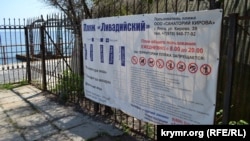 Пляж «Лівадійський» у Ялті викликає запитання вже на вході. Згідно з інформацією на одному з табло, він працює щодня з 8:00 до 20:00.