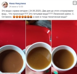 Ось таку воду у кранах показують жителі села Останіне Ленінського району. «Два дні до цього хлорували воду. Що відбувається? Це питна вода? А яка ж тоді технічна вода?» ‒ пише у групу для звернень до Сергія Аксенова місцева мешканка Ніна Нікуліна.